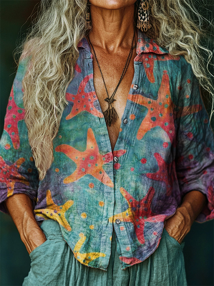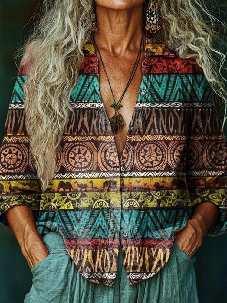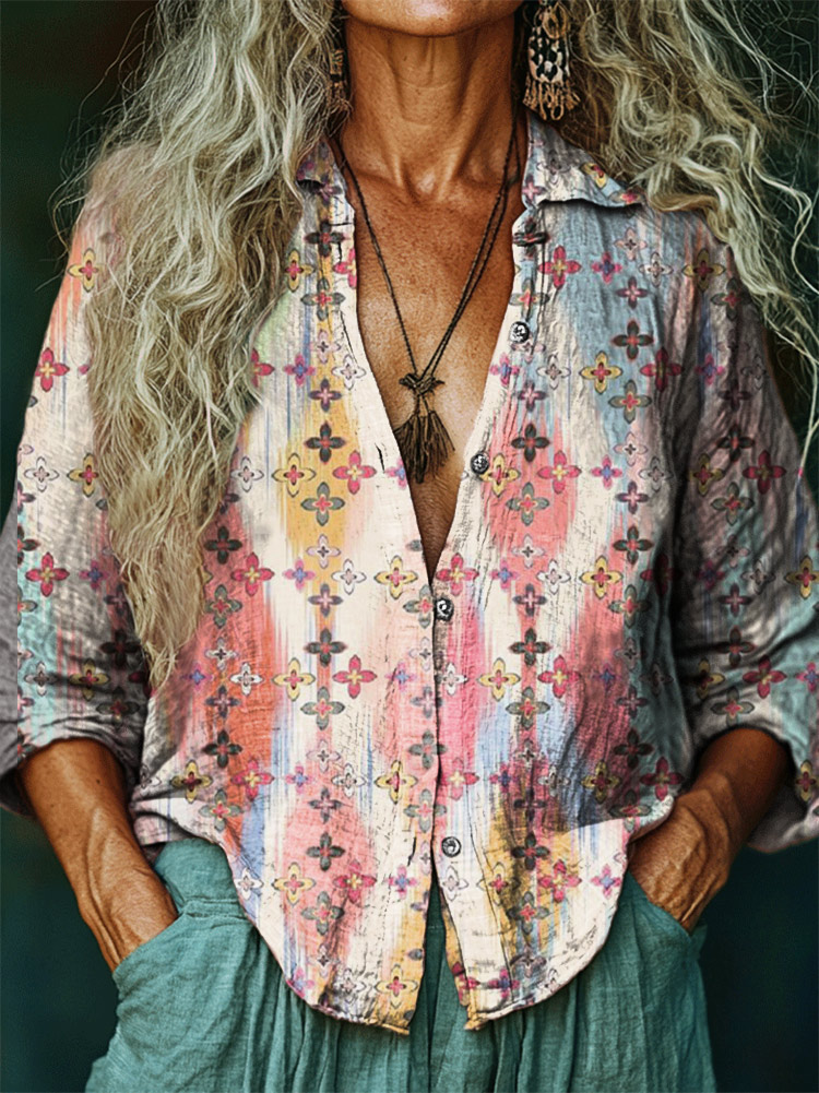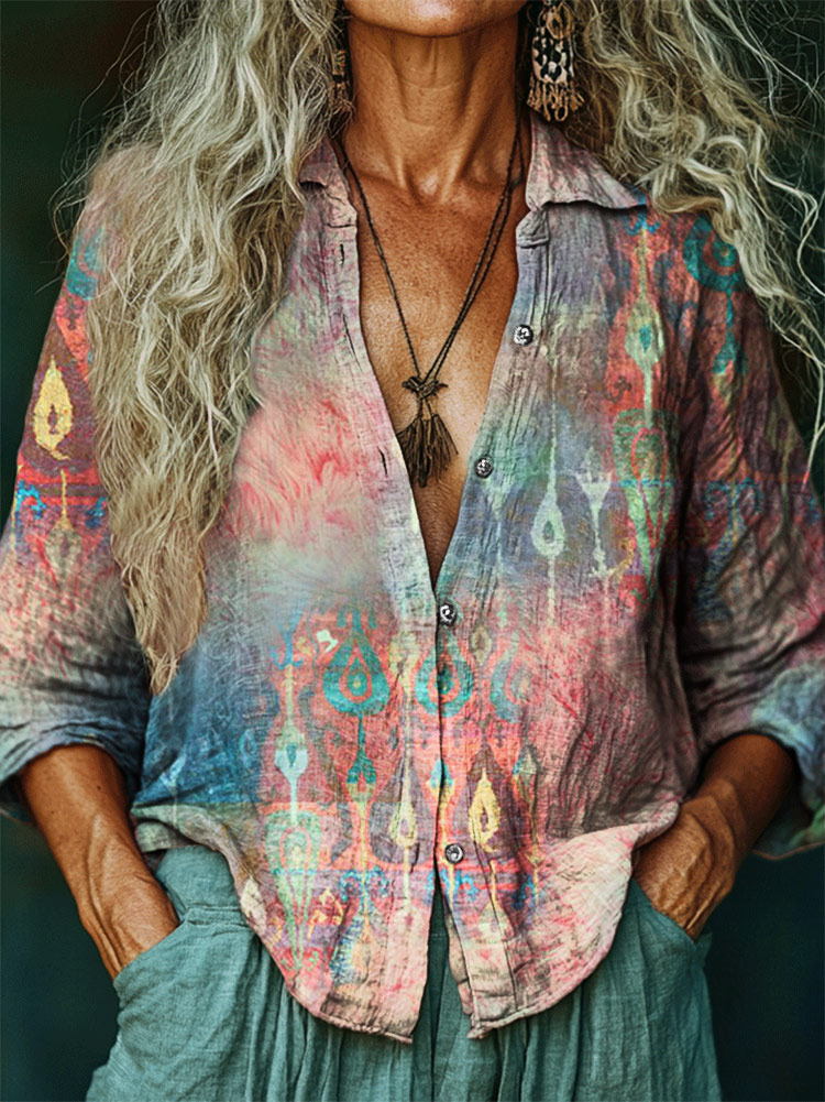 Women's Hippie Art Print Casual Cotton Shirt