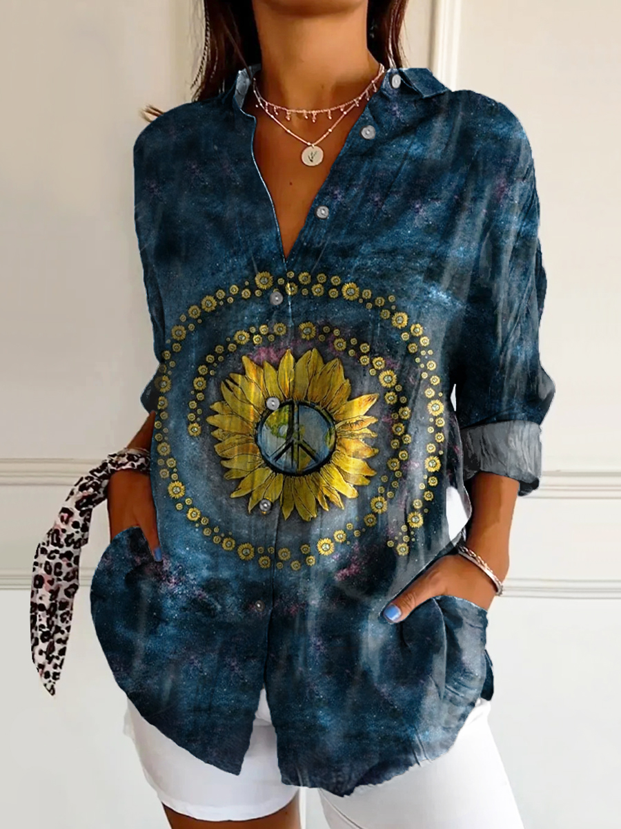 Women's Hippie Peace Art Print Casual Cotton Shirt