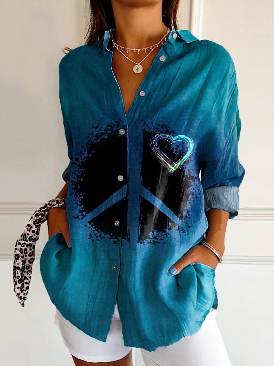 Women's Hippie Peace Love Art Print Casual Cotton Shirt