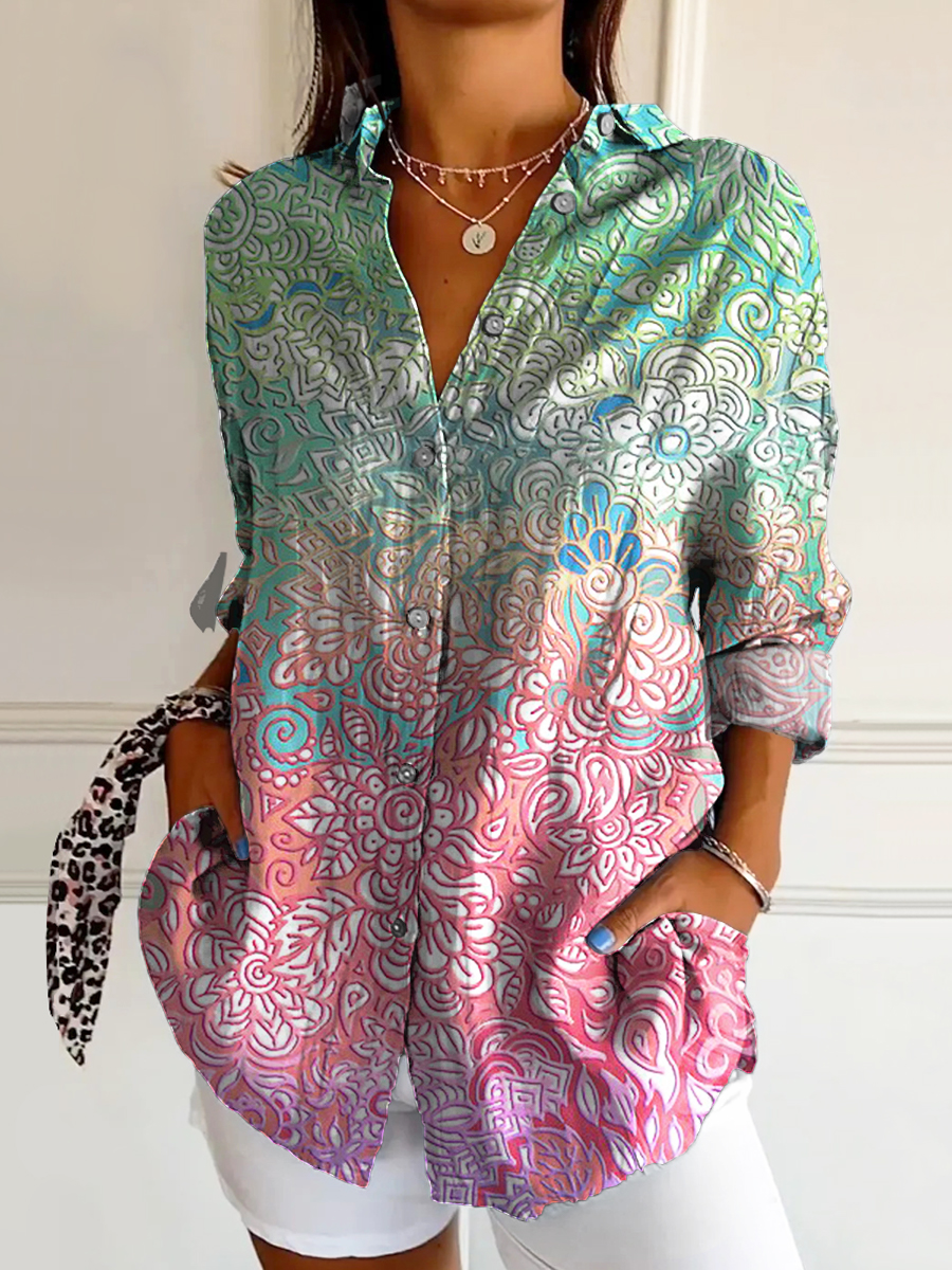 Women's Hippie Art Print Casual Long Sleeve Comfortable Cotton Shirt