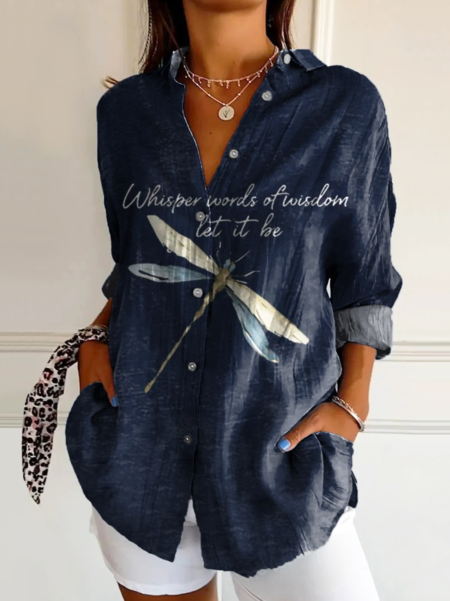 Women's Hippie Dragonfly Art Print Casual Cotton Shirt