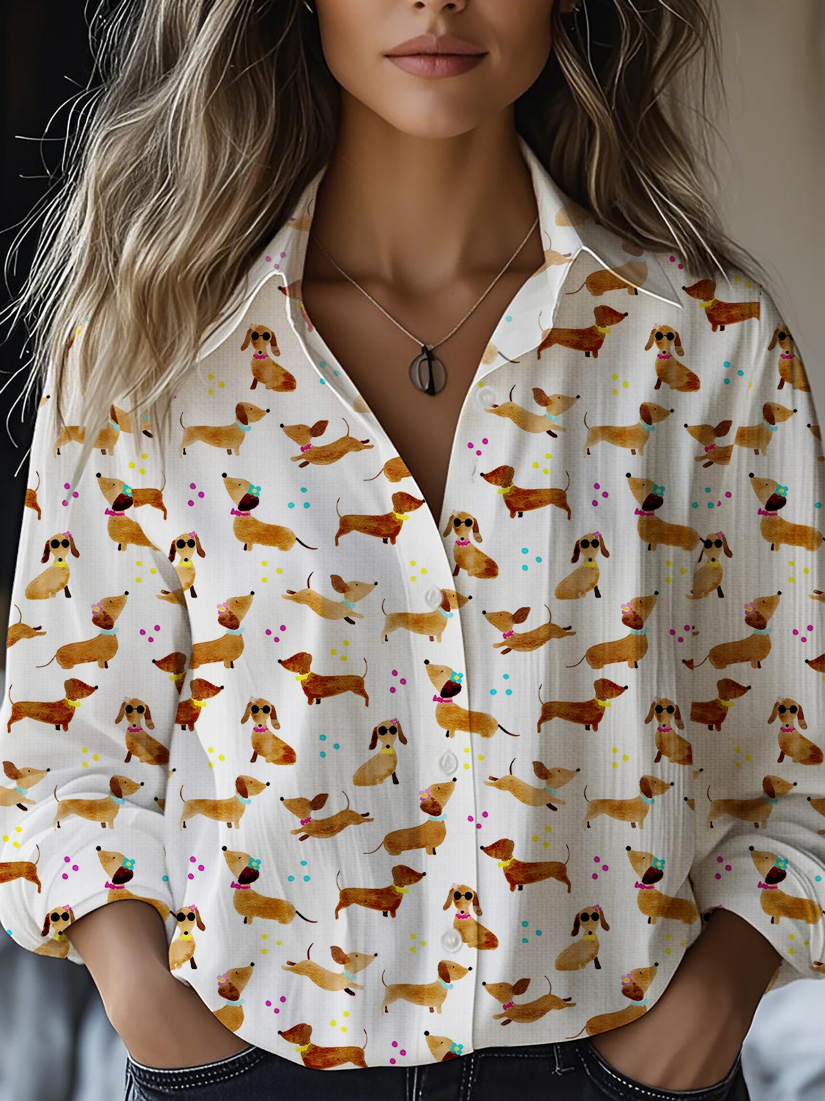 Women's Colorful Cute Puppy Print Casual Cotton Shirt