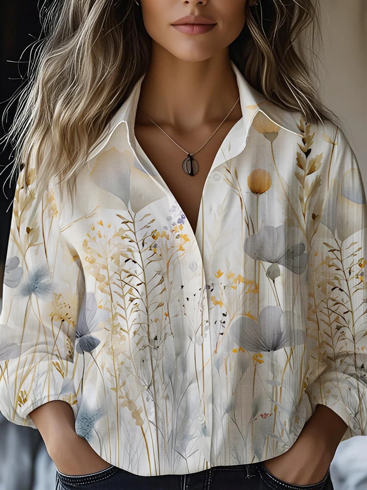 Women's Wildflower Art Print Casual Cotton Shirt
