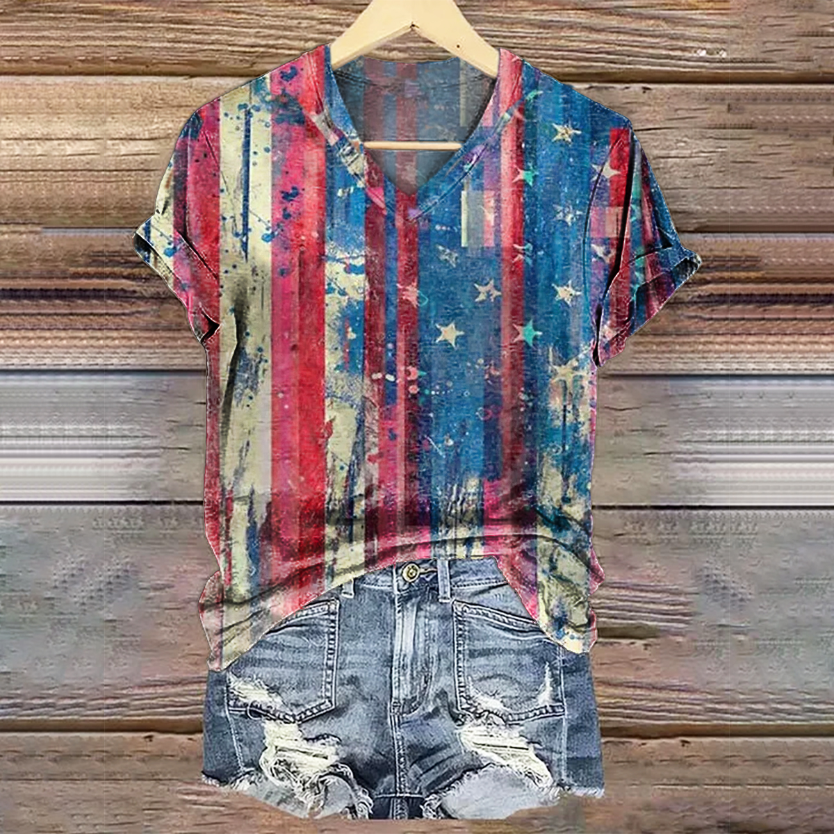 Women's Tie-Dye Art Print V-Neck Casual T-Shirt