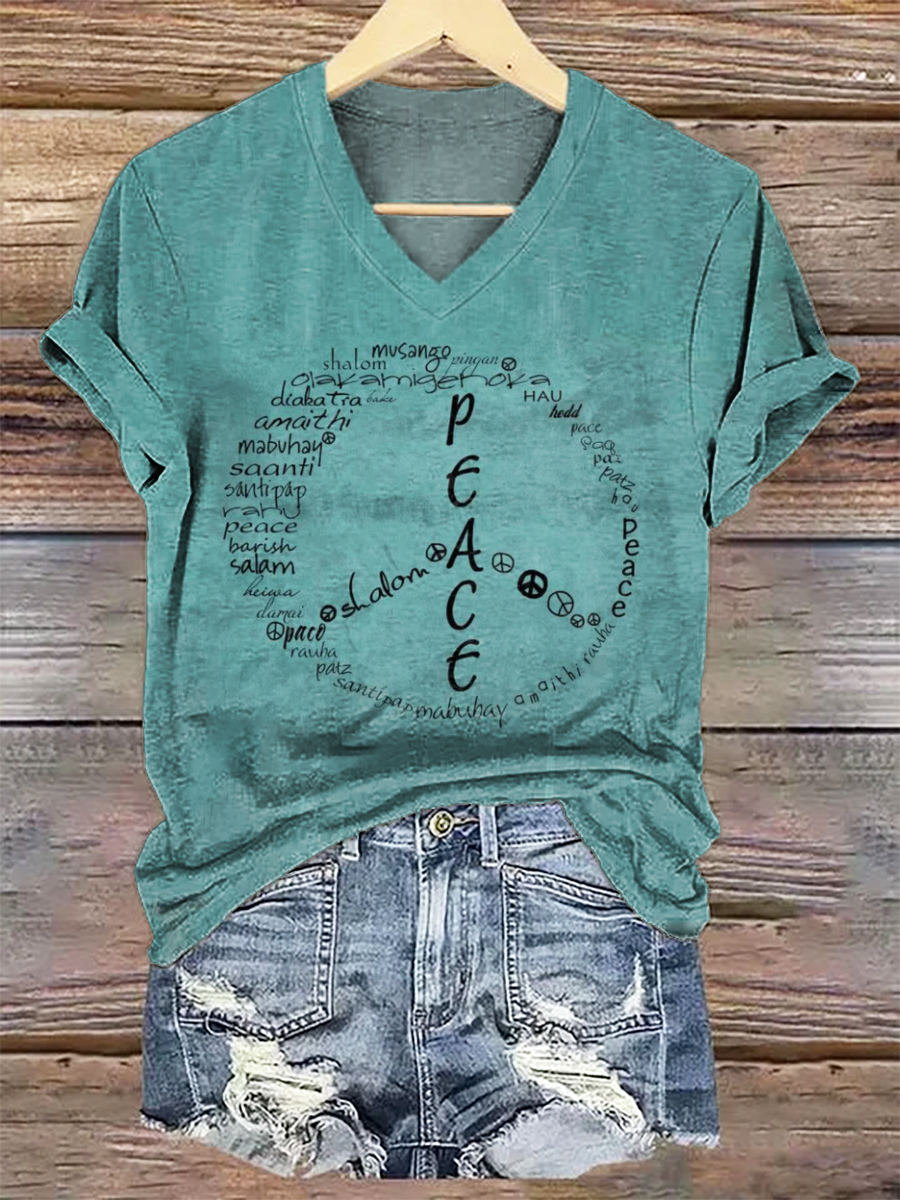 Women's Art Painting Hippie Print V-Neck T-Shirt