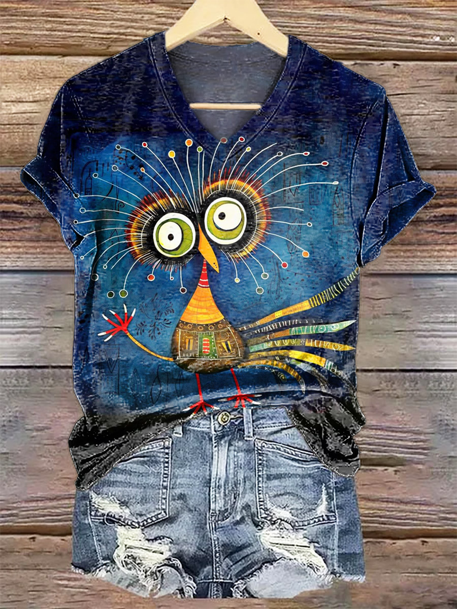 Women's Bohemian Bird Art Print V-neck Casual T-Shirt