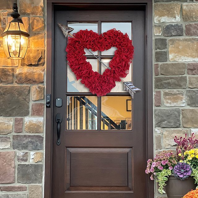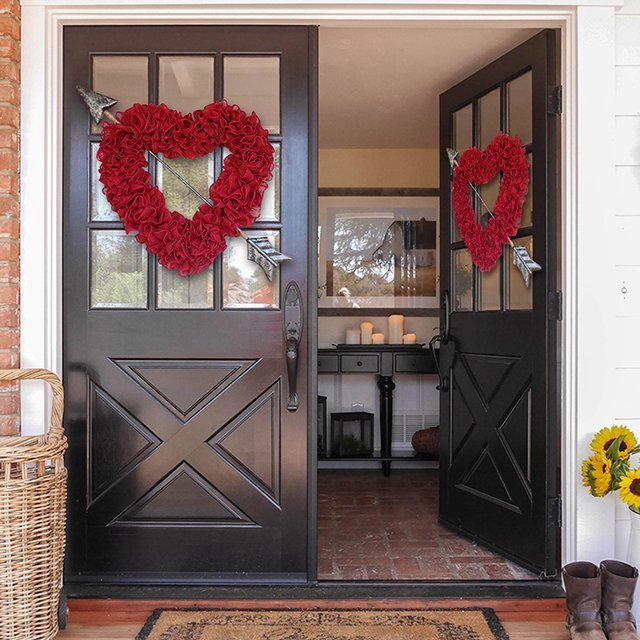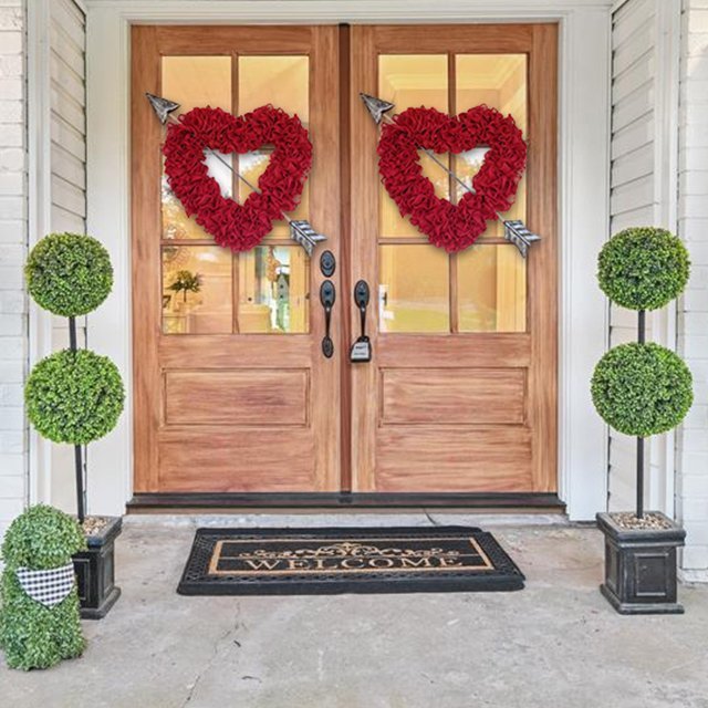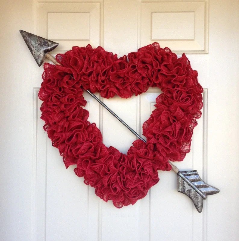 💕Best Gift?Makes A Great Gift For A Couple! Perfect For An Anniversary, Engagement, Wedding, Valentines Day, Etc.. 🥳Best Seller year after year for Valentine's Day! Our front door Heart wreath is sure to be a whimsical hit this year as well! 💏What better way to say I love you! This will outlast a card by a long shot, and on an exterior door for Valentines Day or on the bedroom door, it will remind that special someone every day of just how much they are loved.Great Valentine's gift or Anniversary gift!💝 Beautiful red ruffled burlap wreath makes a statement with its size. This is a much larger version of the original ruffled romance!This large arrow can come in the gold/bronze, hammered silver or plain gold. This wreath still fits nicely on your front door behind the screen door. 💖This wreath that will bring the love of Valentine's Day into your decor.💖This beautiful heart wreath is great for Valentine’s Day and your everyday farmhouse country decor.