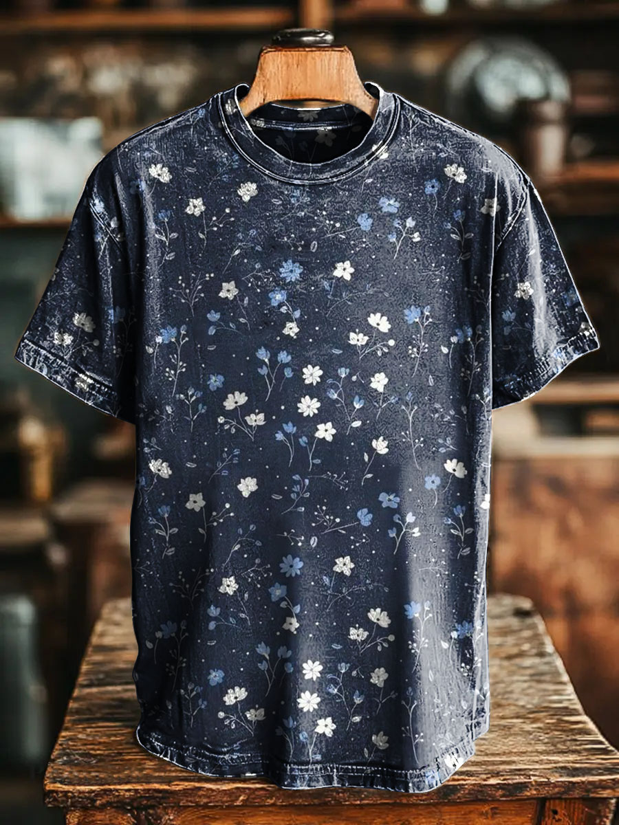 Blue flowers Pattern Vintage Art Print Casual T-shirt For Men And Women