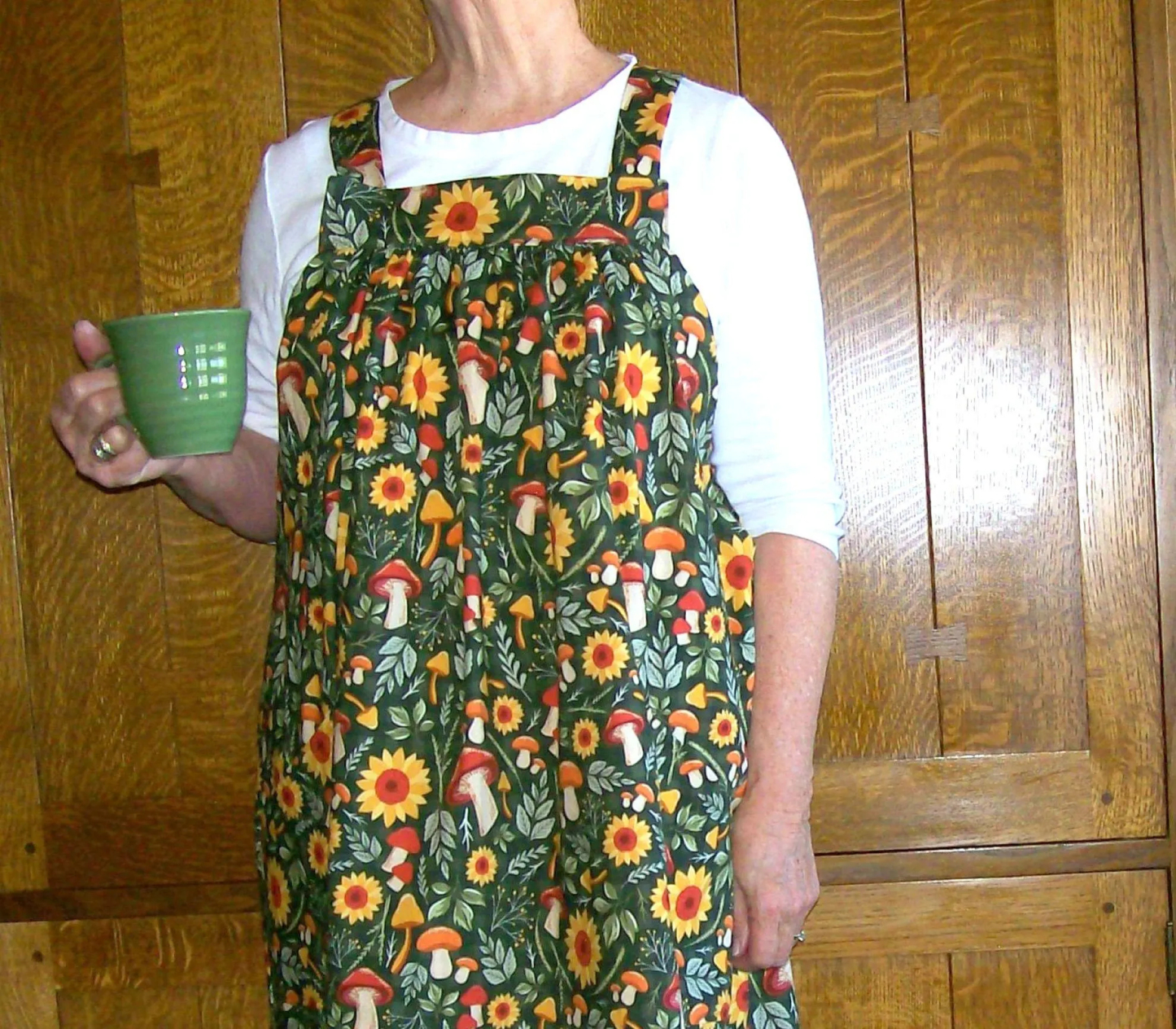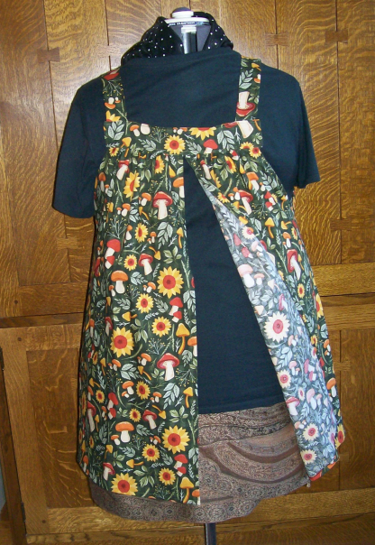 The big skirt catches spills, wide straps free your shoulders: