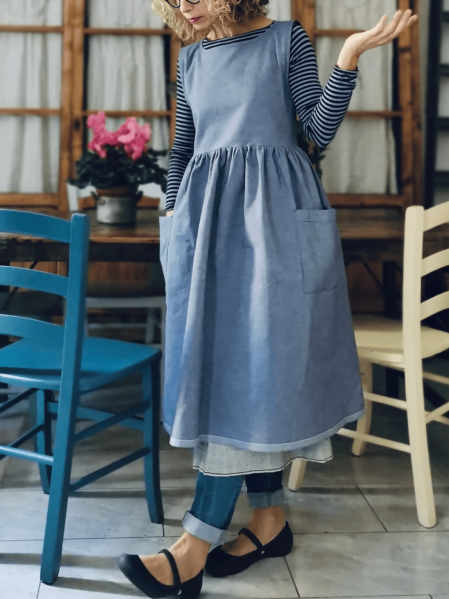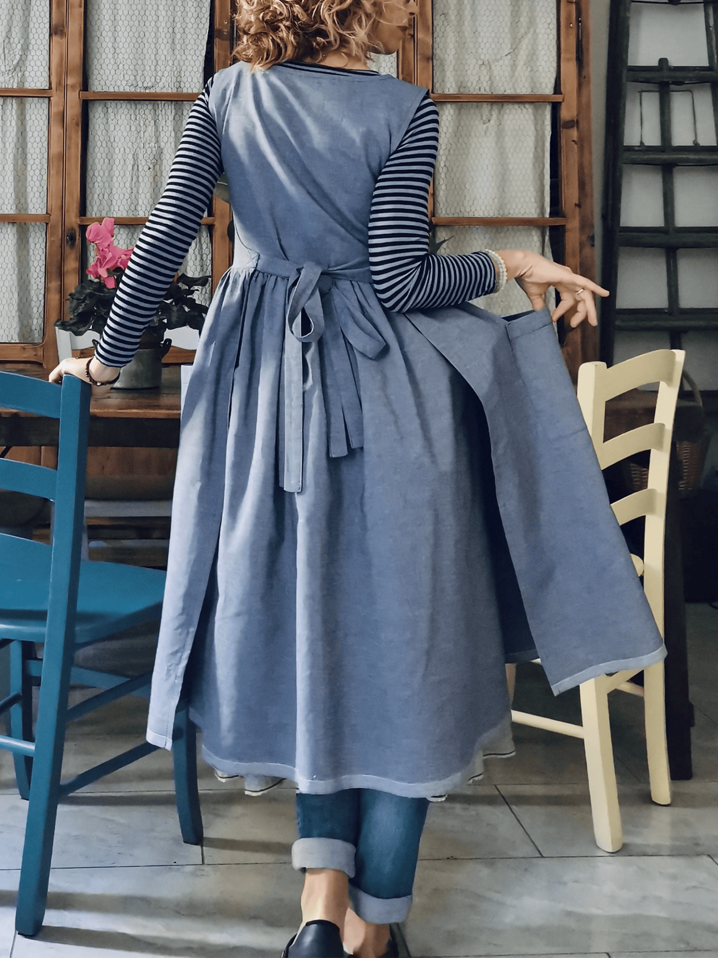 This Blue Linen and Cotton Kitchen Apron represents the perfect fusion of functionality and style for the discerning home chef, crafted from a premium blend of natural linen and cotton fibers that delivers exceptional durability while maintaining breathability and comfort during extended cooking sessions. The sophisticated blue colorway adds an elegant touch to any kitchen environment while effectively concealing minor stains and spills that occur during food preparation. The natural fiber composition ensures easy care and maintenance, as the apron becomes softer and more comfortable with each wash while retaining its structural integrity and color vibrancy. Designed with the American kitchen in mind, this apron features a classic silhouette that provides comprehensive coverage from chest to mid-thigh, protecting clothing from splatters, spills, and heat while allowing for unrestricted movement during cooking, baking, and food service activities. The adjustable neck strap and wraparound waist ties accommodate various body types and ensure a secure, comfortable fit for both casual home cooking and more intensive culinary endeavors. Whether you're preparing weeknight dinners, hosting holiday gatherings, or pursuing your passion for gourmet cooking, this versatile apron serves as an essential kitchen companion that combines practical protection with timeless aesthetic appeal, making it an ideal choice for personal use or as a thoughtful gift for cooking enthusiasts who appreciate quality craftsmanship and functional design.