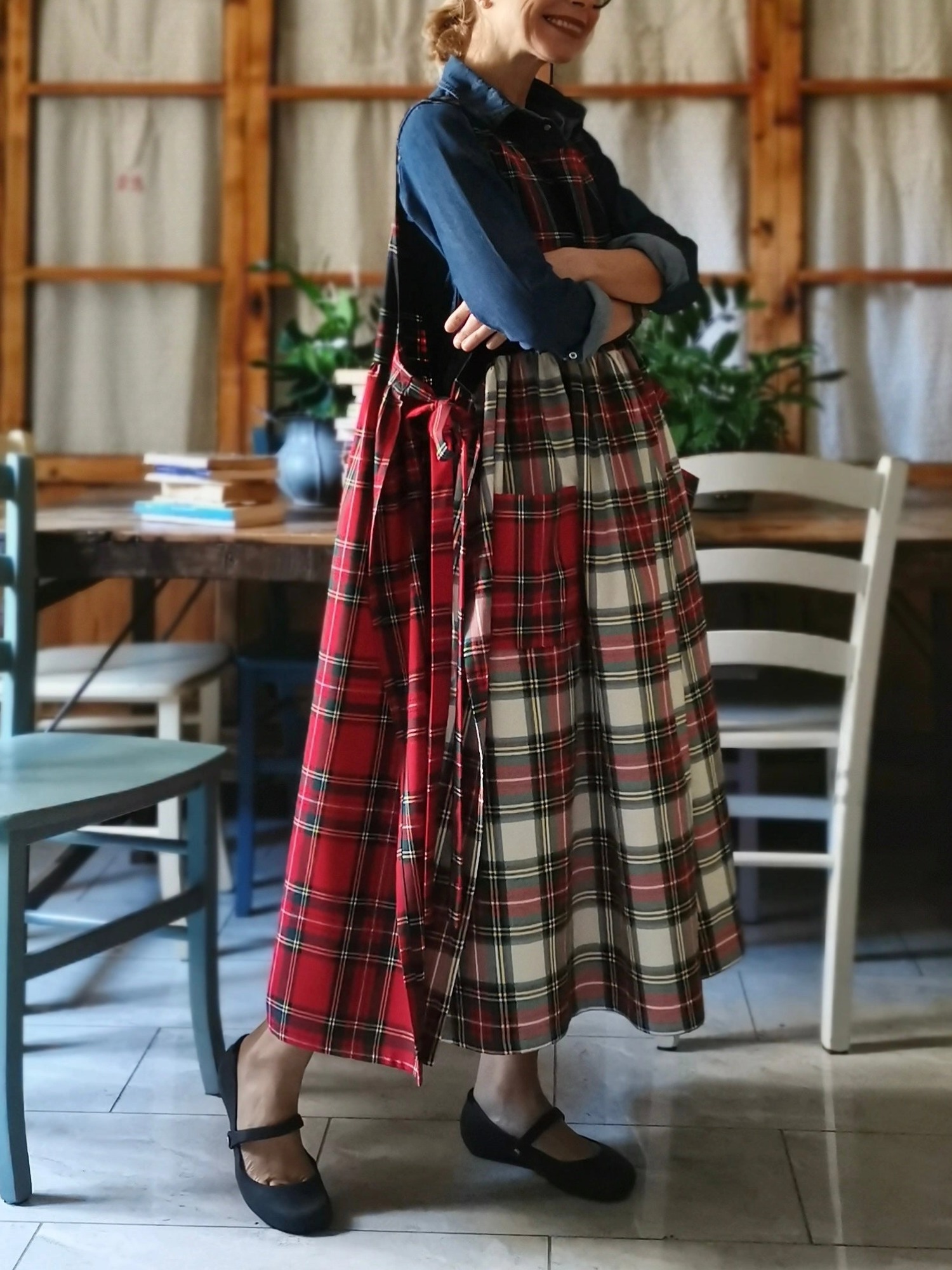 The Patchwork Tartan Cotton Apron combines traditional Scottish plaid patterns with modern patchwork design, creating a distinctive and functional kitchen accessory that embodies both heritage and contemporary style. Crafted from premium 100% cotton fabric, this apron features a carefully curated selection of coordinating tartan patterns arranged in an eye-catching patchwork configuration that adds visual interest and character to any culinary workspace. The durable cotton construction ensures excellent absorption and easy maintenance, while the classic tartan motifs provide a timeless appeal that complements both rustic farmhouse kitchens and modern culinary environments. Designed with adjustable neck and waist ties for a customizable fit, this apron offers comprehensive coverage to protect clothing during cooking, baking, grilling, or entertaining activities. The reinforced stitching and quality construction guarantee long-lasting performance, making it suitable for both everyday home cooking and professional culinary applications. This versatile apron serves as an excellent gift for cooking enthusiasts, professional chefs, or anyone who appreciates the blend of functionality and aesthetic appeal in their kitchen accessories, while the distinctive patchwork tartan design makes it equally suitable for holiday entertaining, outdoor barbecues, or casual family meal preparation.