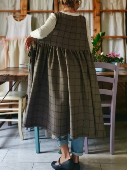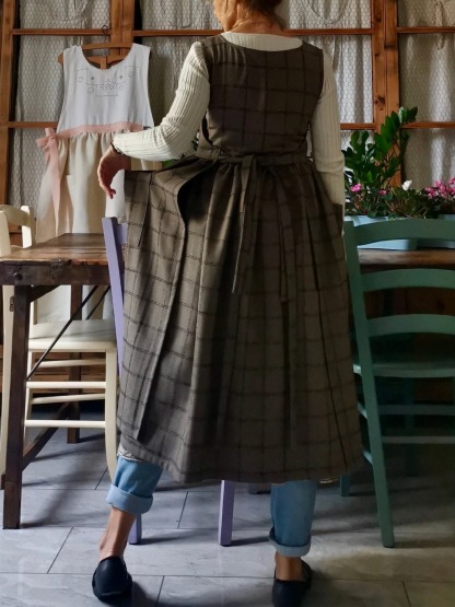 Brown Tartan Apron with Pockets