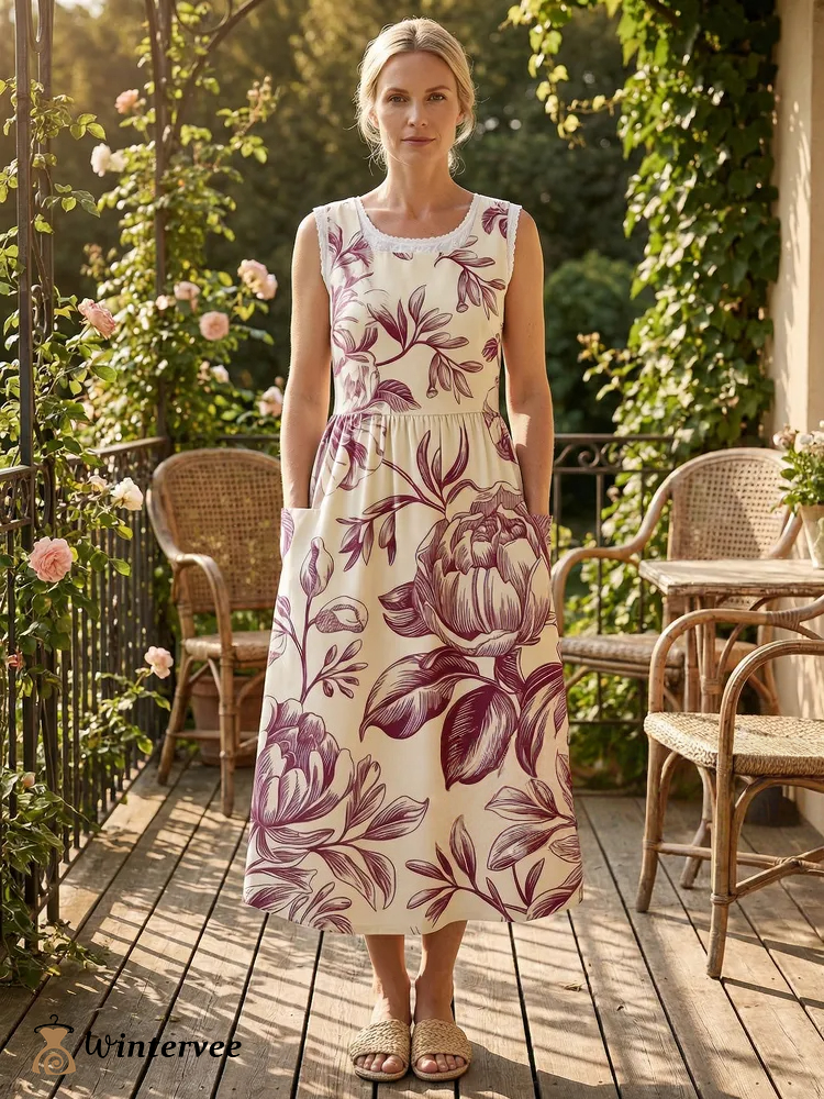 Peony Charm Printed Apron & Dress (2-in-1)