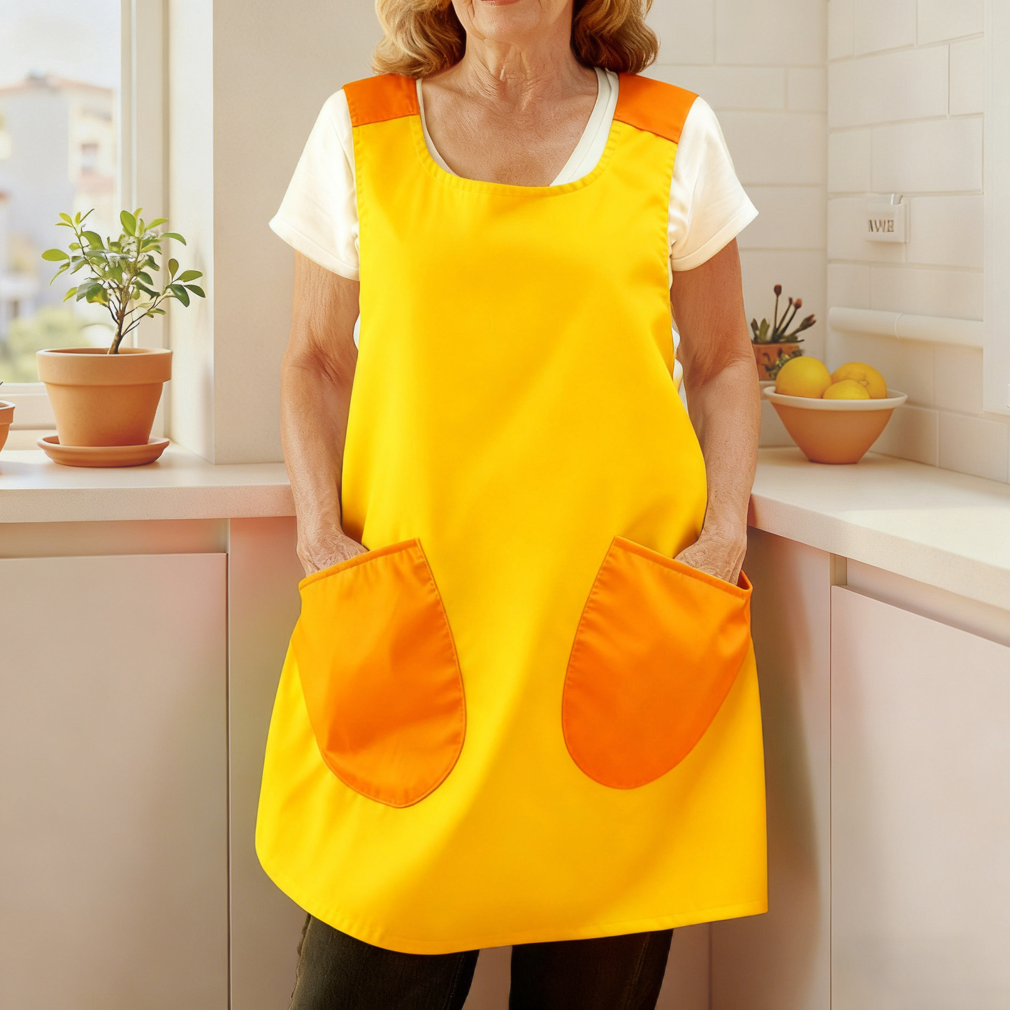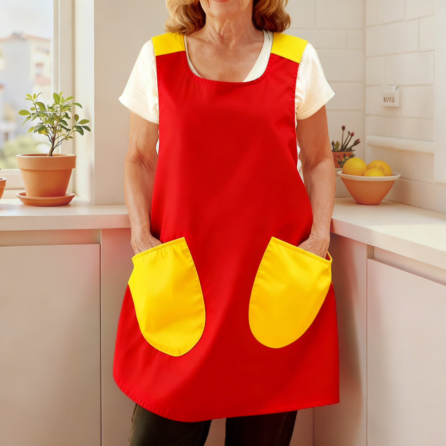 This apron is made of high-density wear-resistant fabric, which has been “wash tested” by professional labs, and the color is still as bright as before, and the fabric does not pill or deform, and always maintains a firm texture.