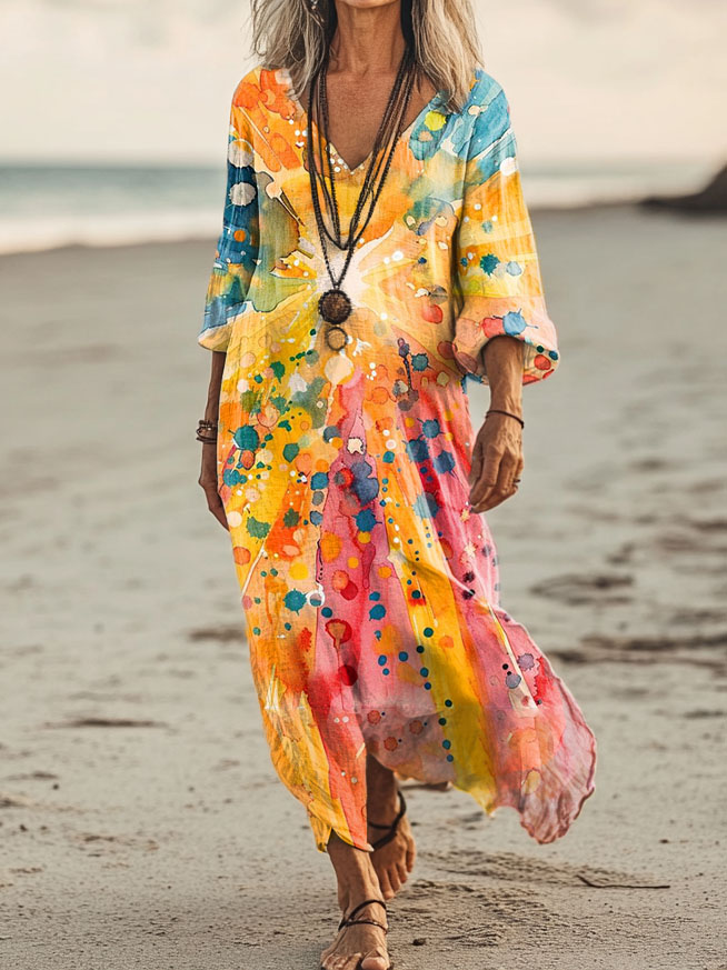 Women's Colorful Patterns Art Print Pockets Cotton Dresses