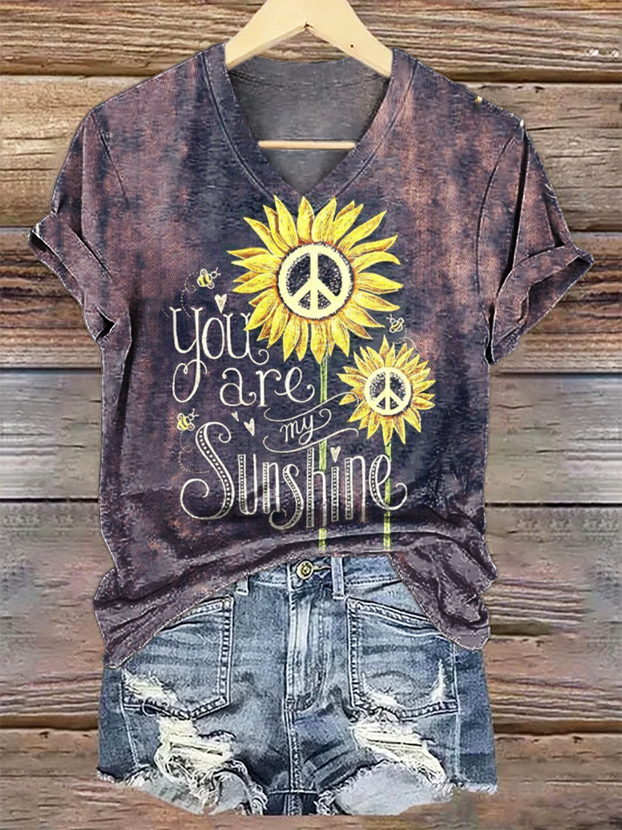 Women's Hippie Art Painting Print V-Neck T-Shirt