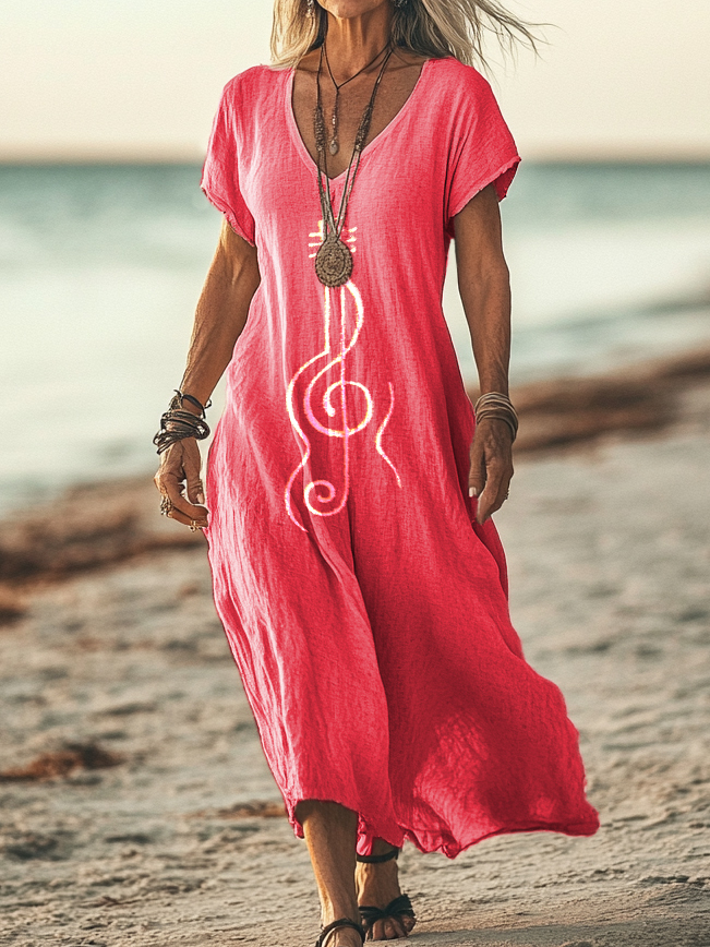 Women's Hippie Violine Art Print Pocket Cotton Dress