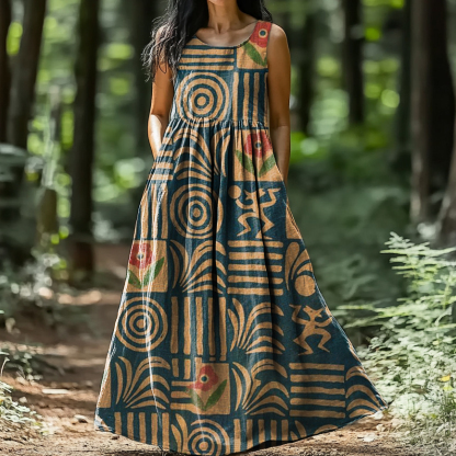 Women's Irregular Pattern Art Print Round Neck Vest Dresses