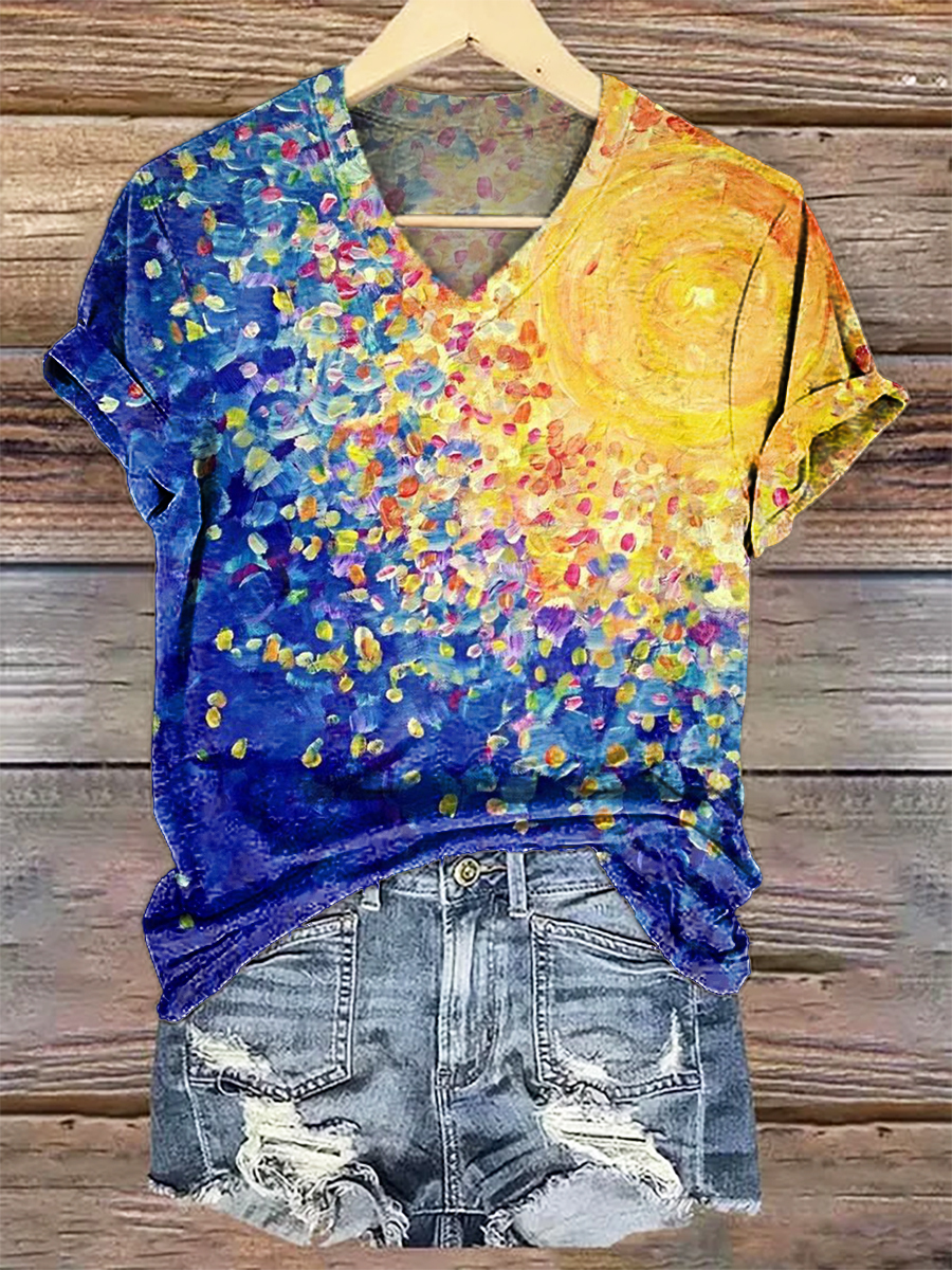 Women's Sun Art Print V-Neck Casual T-Shirt
