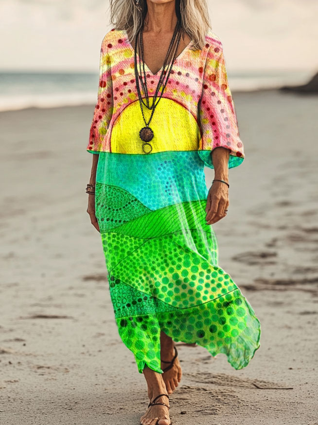 Women's Sun Peaks Patchwork Pattern Art Print Pocket Cotton Dress