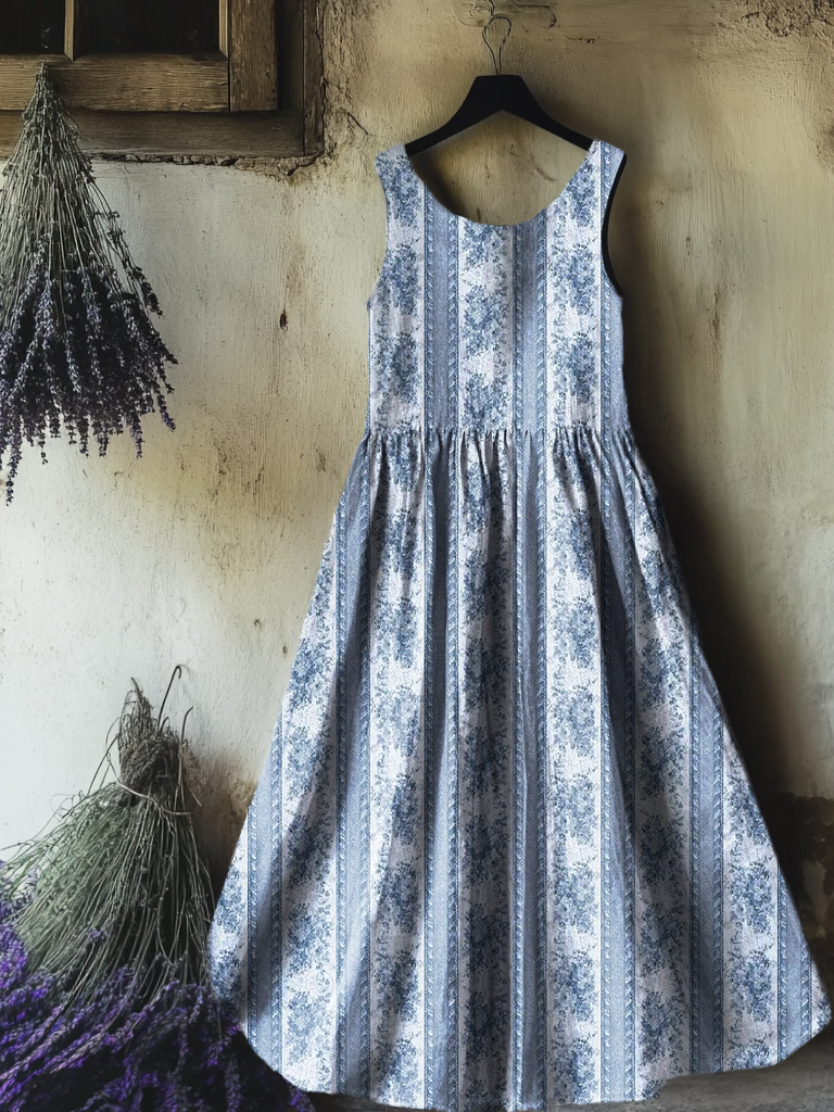 Women's Vintage Ethnic Floral Art Print Sleeveless Cotton Pocket Dress