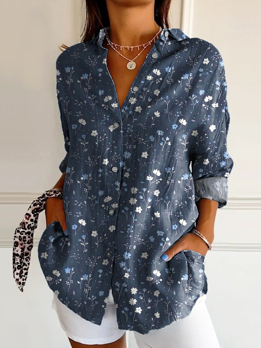 Women's Vintage Floral Art Print Casual Cotton Shirt