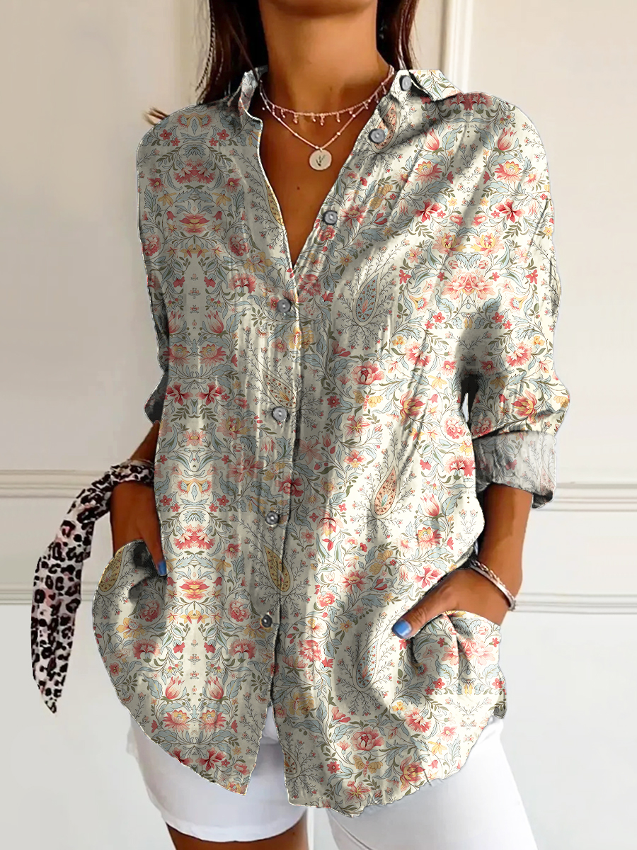 Women's Vintage Paisley Floral Art Print Casual Cotton Shirt
