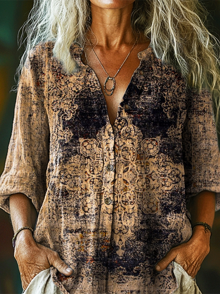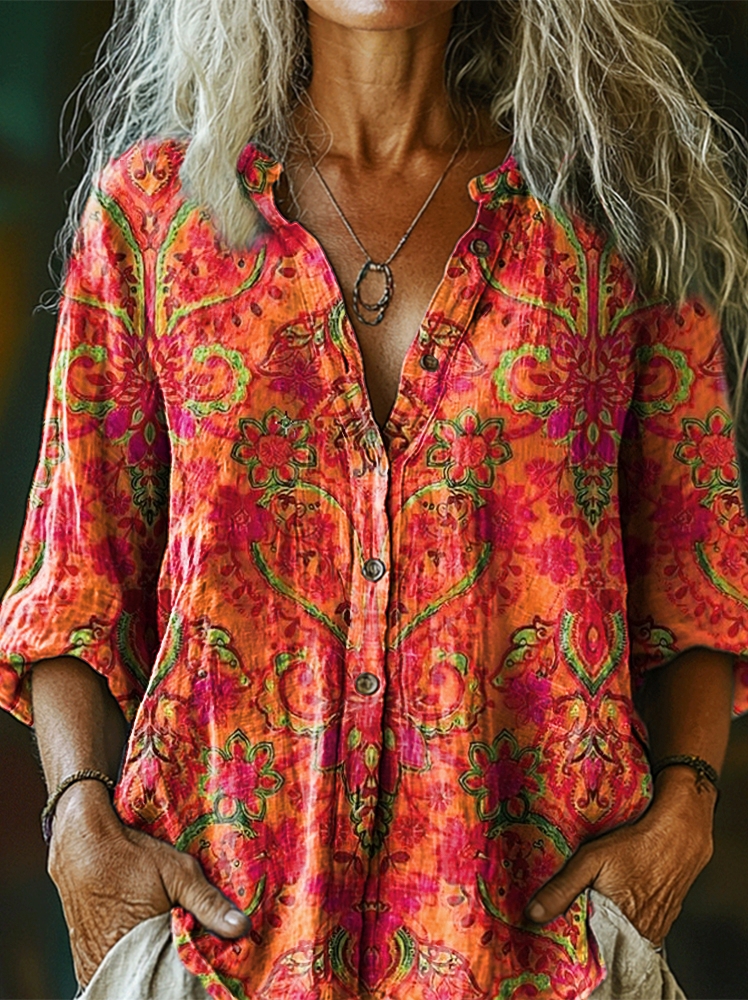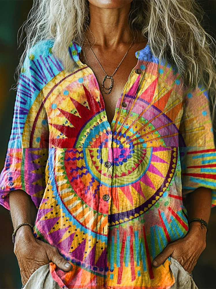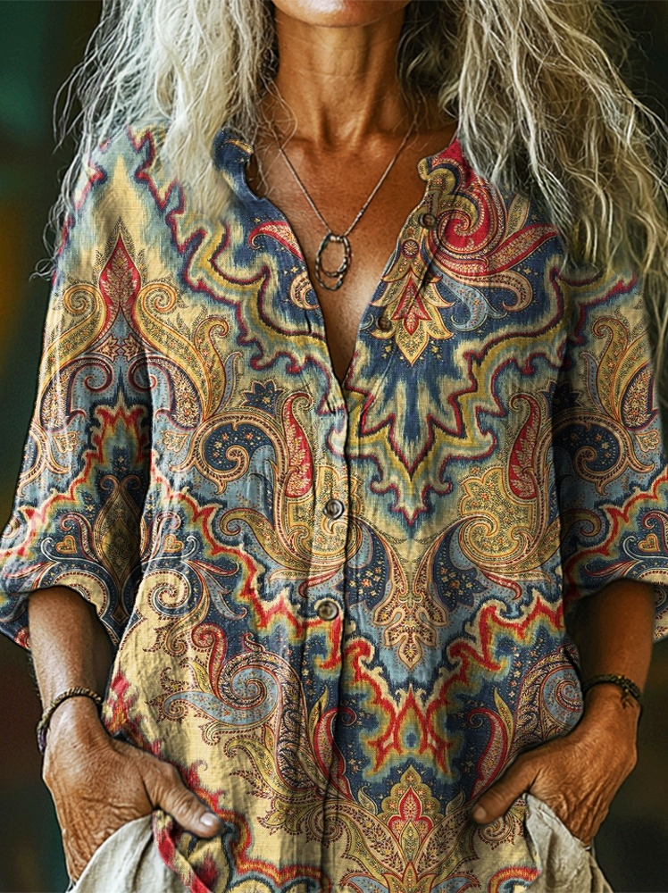 Women's Bohemian Patterns Art Print Casual Cotton Linen Shirt