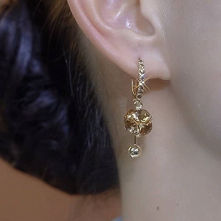 Light luxury zircon wheat ear one-piece earrings niche design super flash leaf earrings temperament versatile earrings A pair
