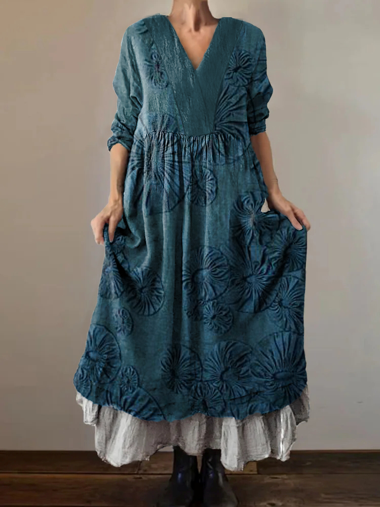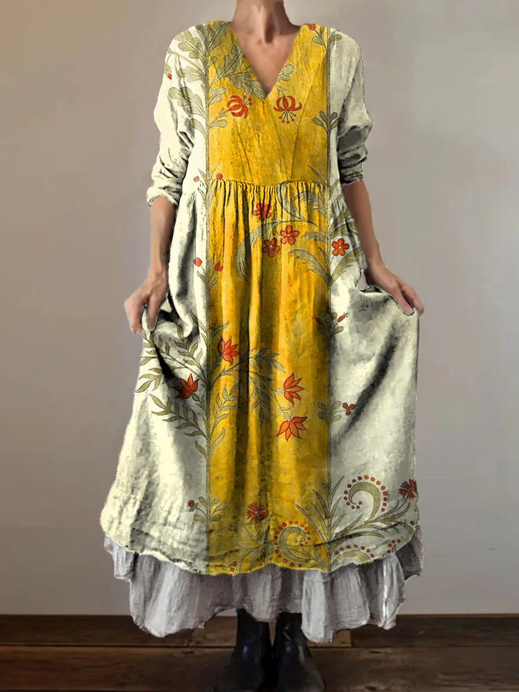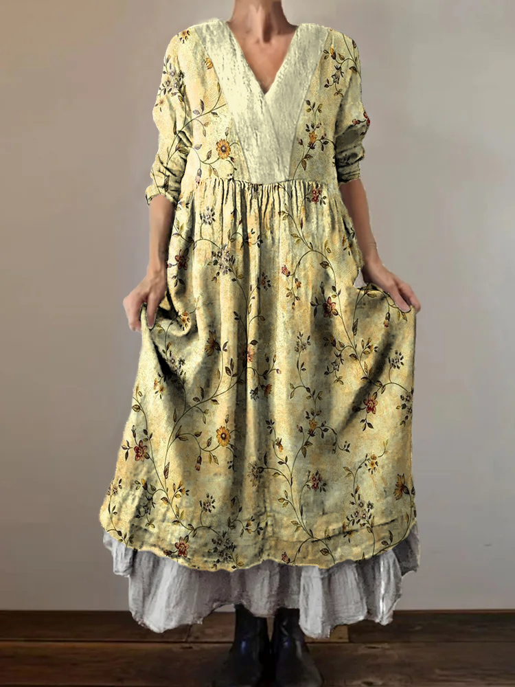 Women's Hippie Art Floral Print V Neck Dress