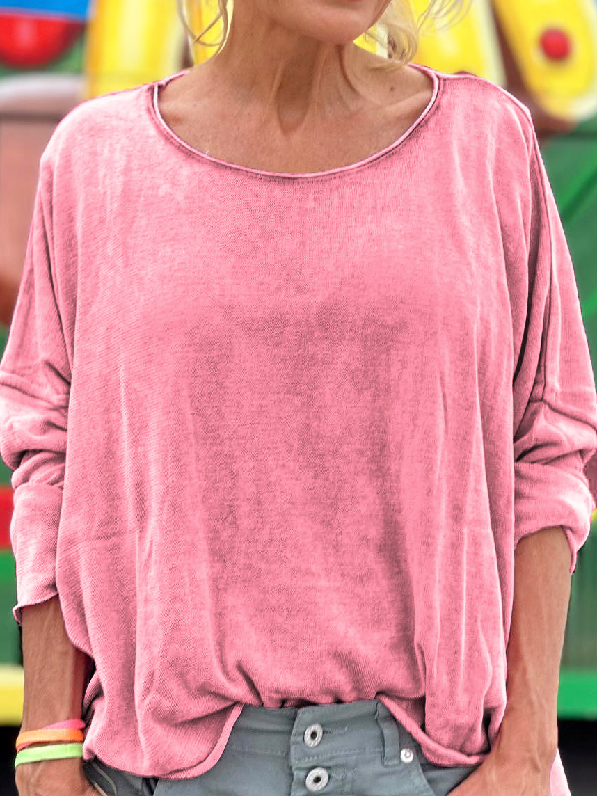 Women's Solid Color Print Casual Long Sleeve T-shirt
