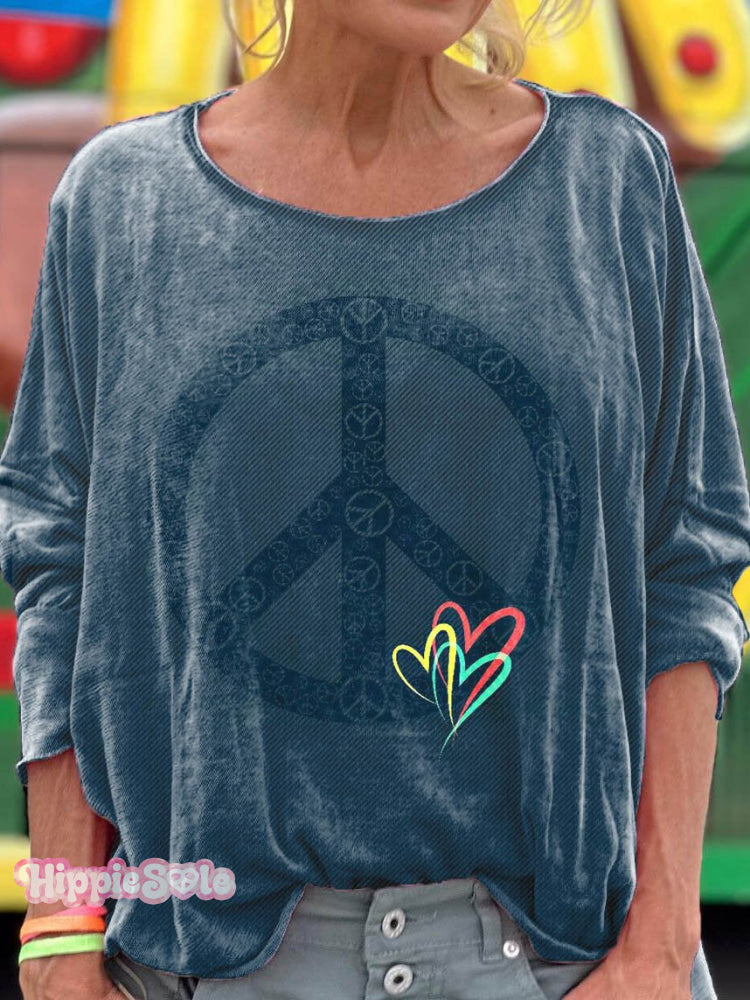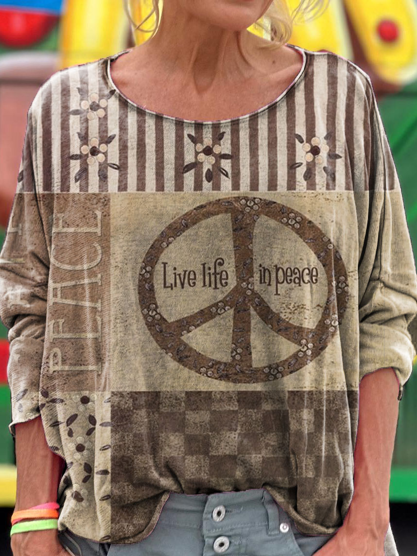 Women's Hippie Peace Is Beautiful Print Casual Long Sleeve T-shirt
