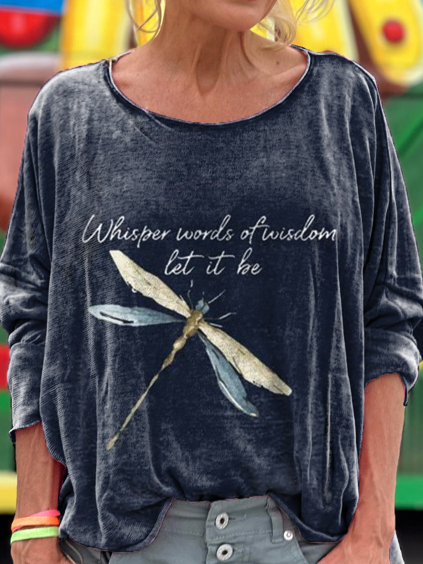 Women's Hippie Whisper Words Of Wisdom Print Casual Long Sleeve T-shirt