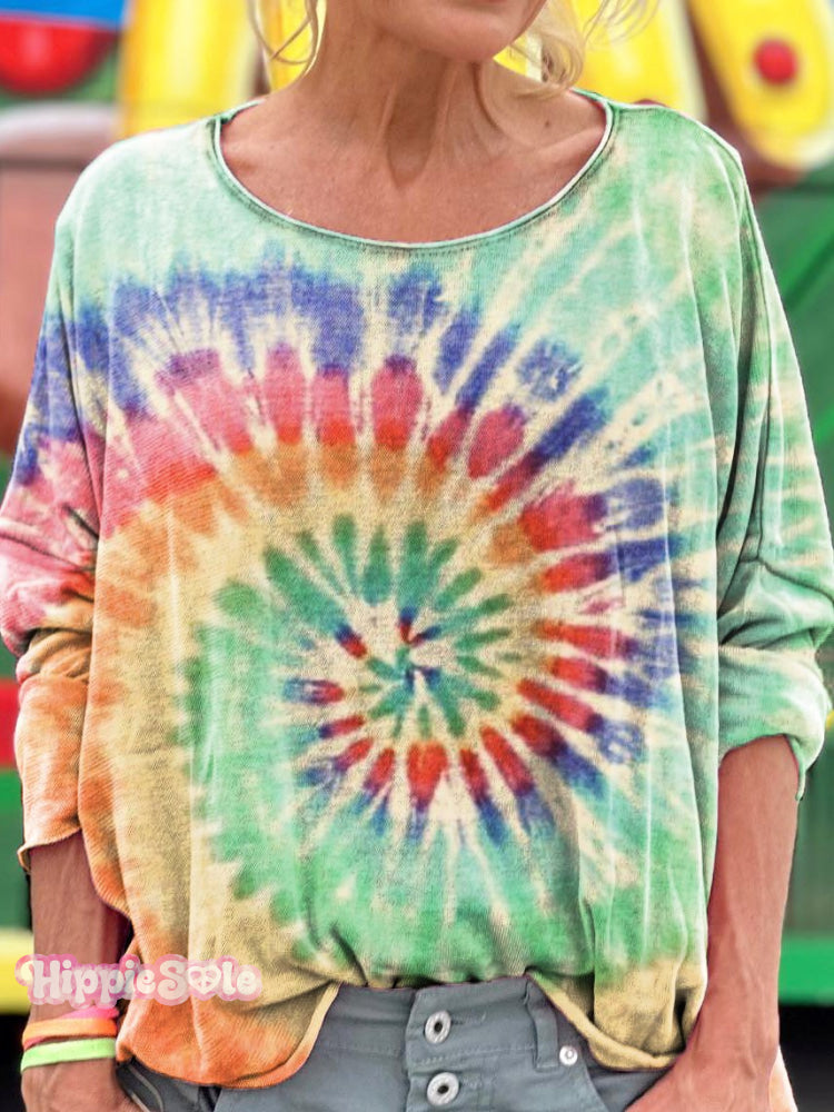Women's Hippie Tie Dye Art Print Casual Long Sleeve T-shirt