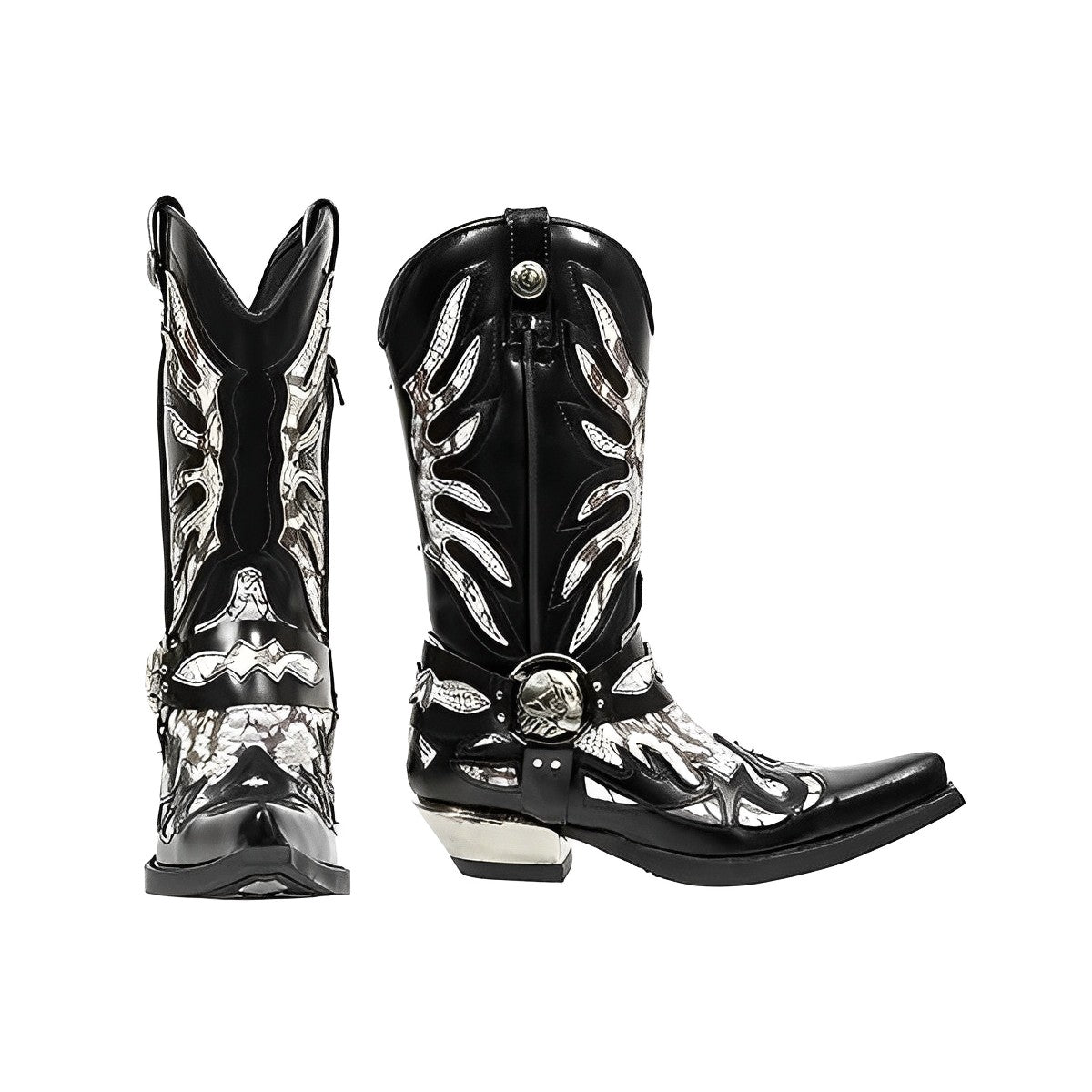 MEN'S EMBROIDERED CHUNKY HEEL VINTAGE HARNESS BOOTS 87732284S