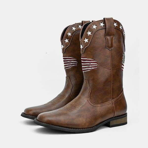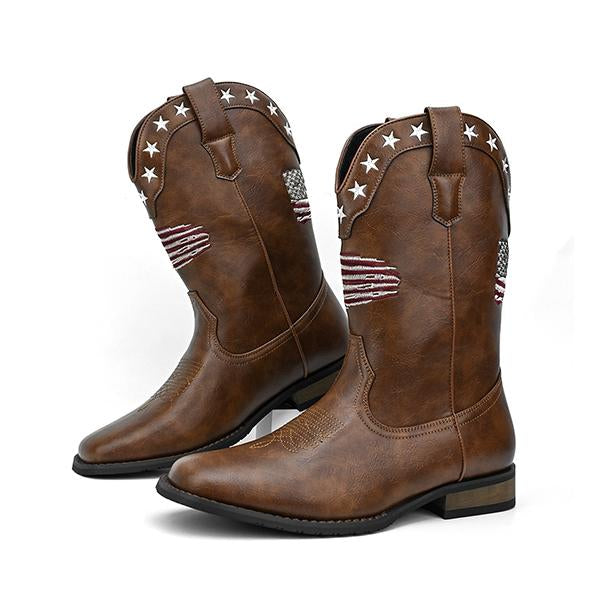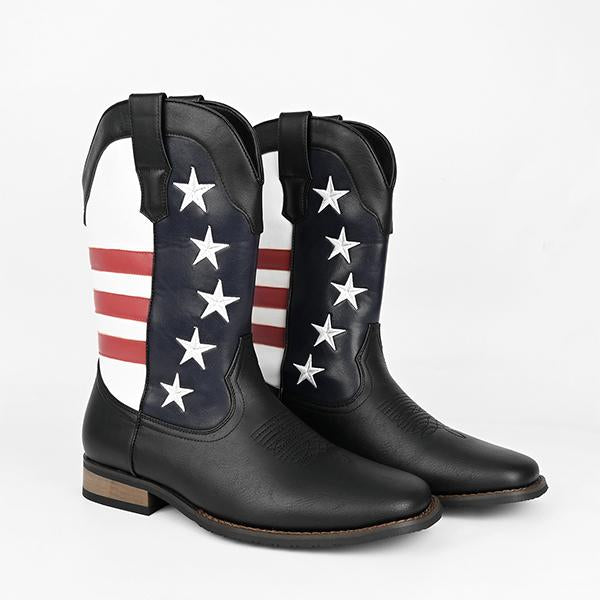 MEN'S STYLISH STAR STRIPED THICK HEEL COWBOY BOOTS 23158251S