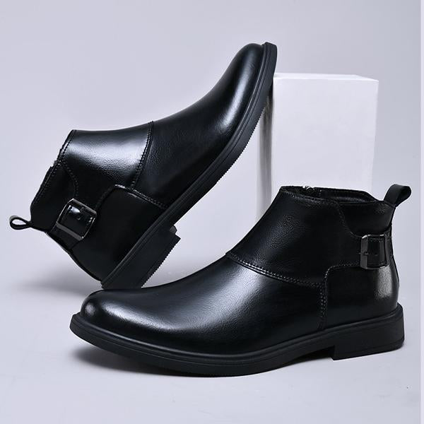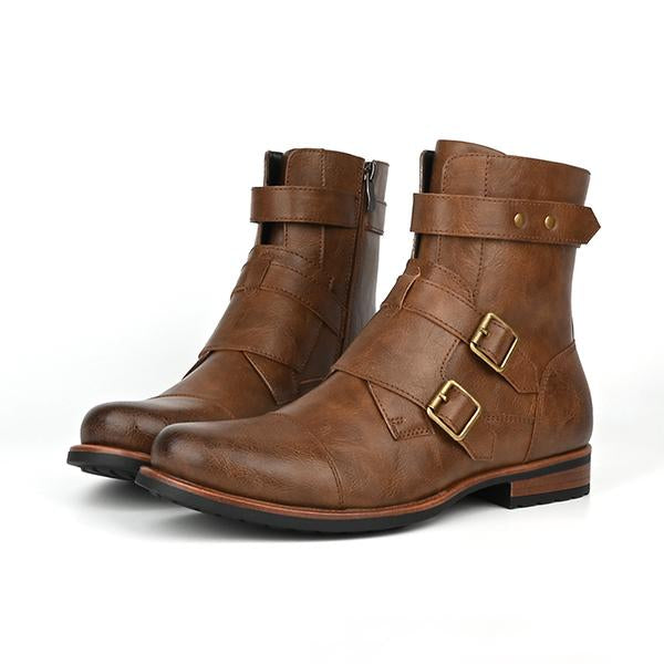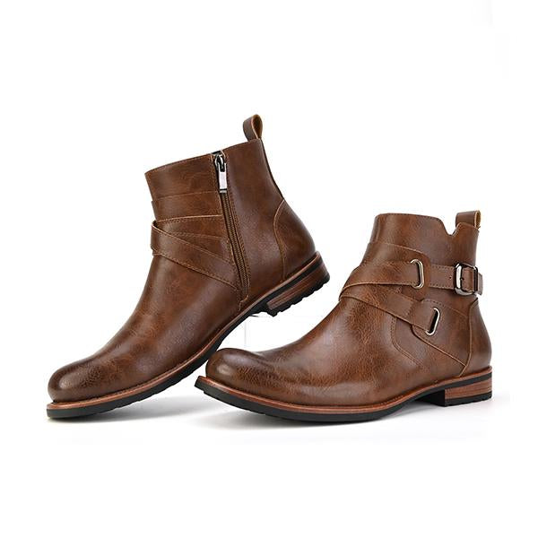 MEN'S SOLID COLOR BUCKLE ADJUSTABLE CASUAL LEATHER BOOTS 13699615YL