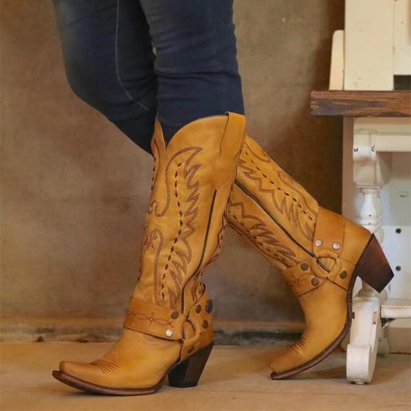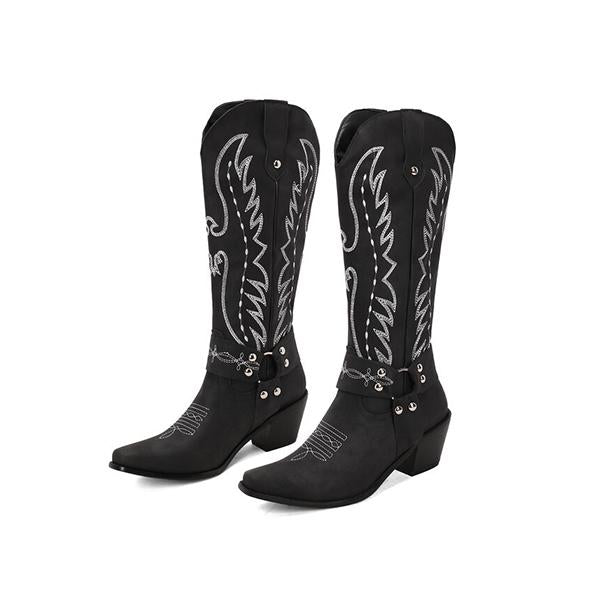 MEN'S POINTED EMBROIDERY THICK HEEL RETRO WESTERN BOOTS 96350662YL