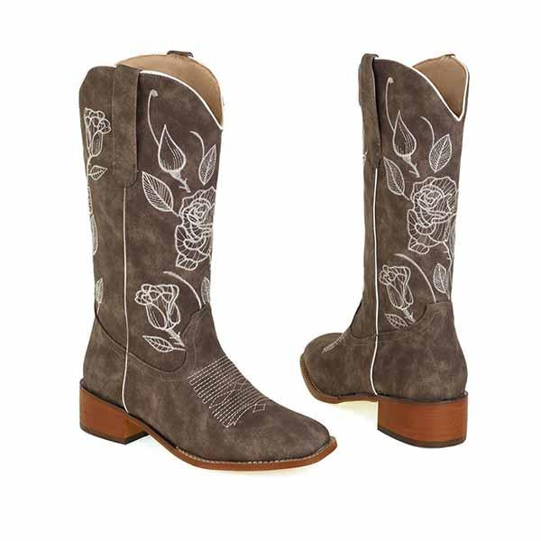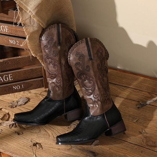 MEN'S RETRO EMBROIDERED SQUARE TOE RETRO COWBOY BOOTS 87377955YL