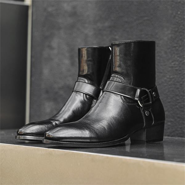 MEN'S RETRO POINTED THICK HEEL FASHION SIDE ZIPPER LEATHER BOOTS 99305189YL