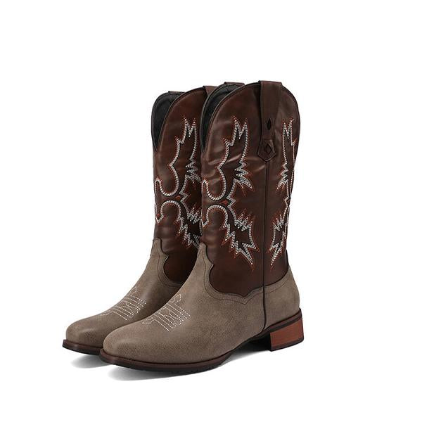 MEN'S COLOR CONTRAST RETRO WESTERN EMBROIDERED BOOTS 65830452YL