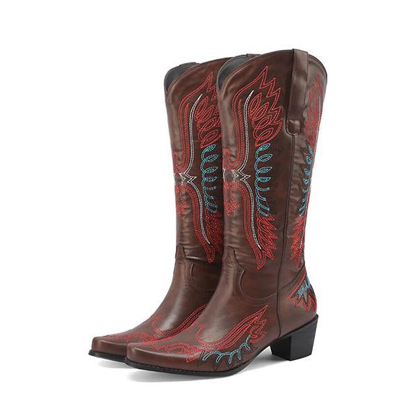MEN'S RETRO POINTED EMBROIDERED COWBOY BOOTS 50092121YL