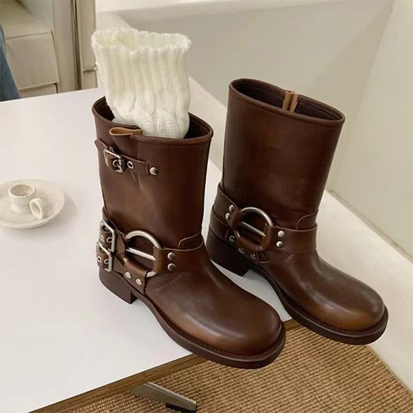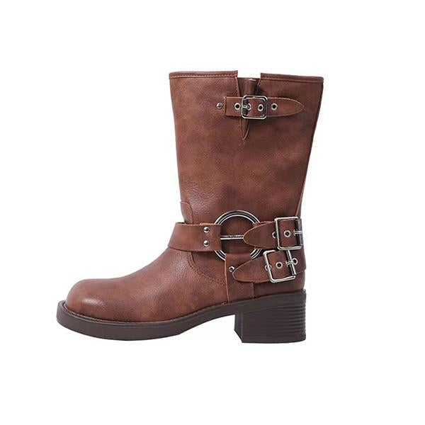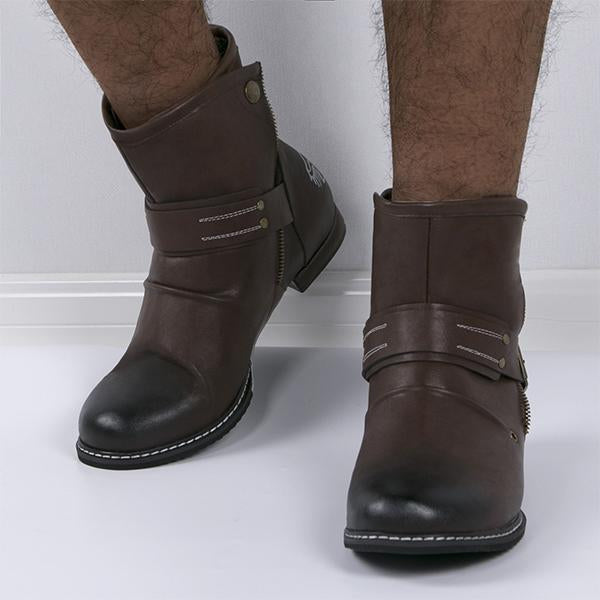 MEN'S VINTAGE MULTI-LAYER BUCKLE MID-CALF BOOTS 15883924S