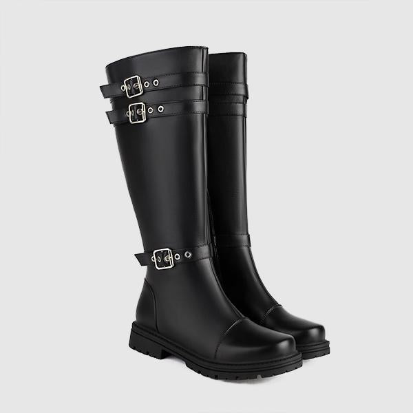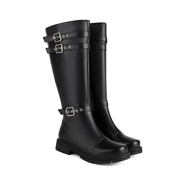 MEN'S MILITARY STYLE BELT BUCKLE DECORATED KNEE HIGH BOOTS 28226443S