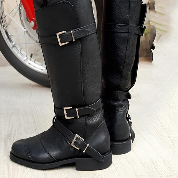 MEN'S VINTAGE BUCKLE PLEATED MOTORCYCLE BOOTS 30868638S