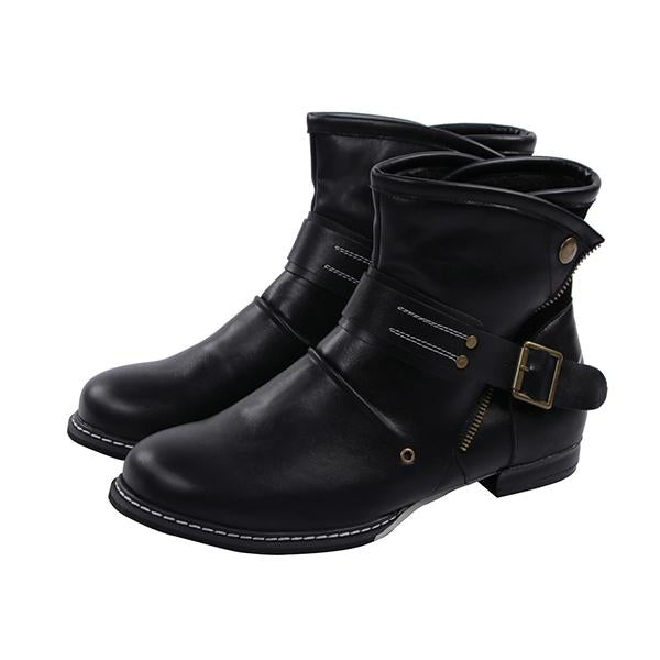 MEN'S VINTAGE BELT BUCKLE FLAT MID-CALF BOOTS 32025311S