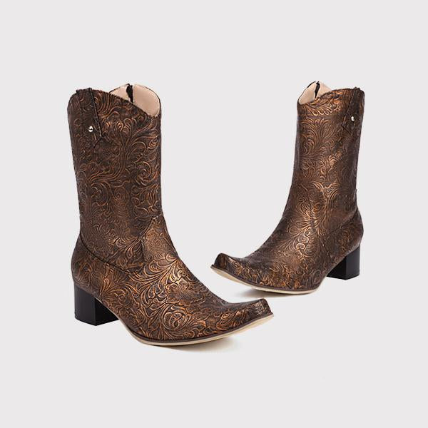 MEN'S MID LENGTH RETRO EMBROIDERED COWBOY BOOTS 75035467YL