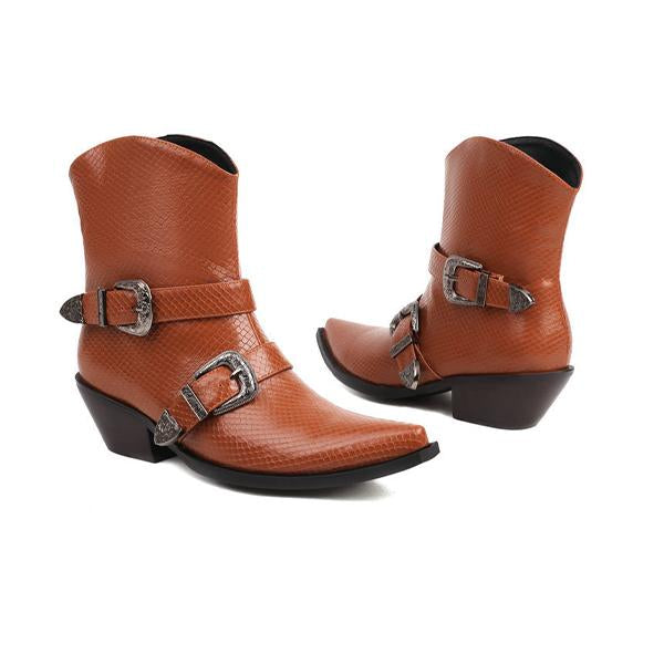 MEN'S RETRO FLAT BUCKLE WESTERN BOOTS 74855775S
