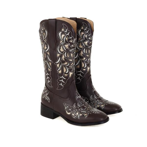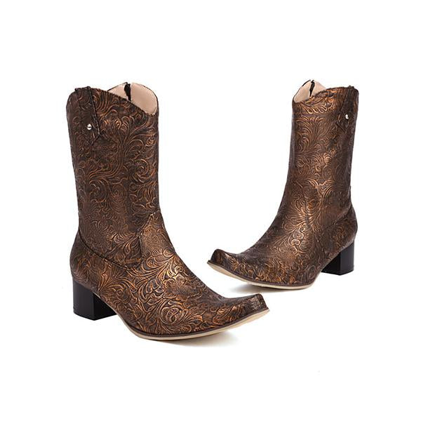 MEN'S RETRO SQUARE TOE EMBROIDERED MIDDLE BOOTS 14482850YL