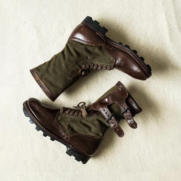 MEN'S RETRO CASUAL FLAT-SOLED SPLICING LACE-UP BOOTS 44743022S